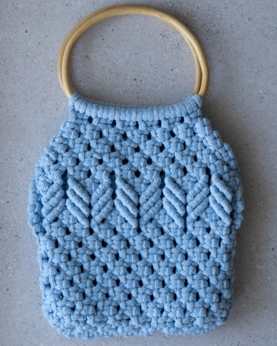 Ręcznie wyplatana torebka z makramy w kolorze niebieskim